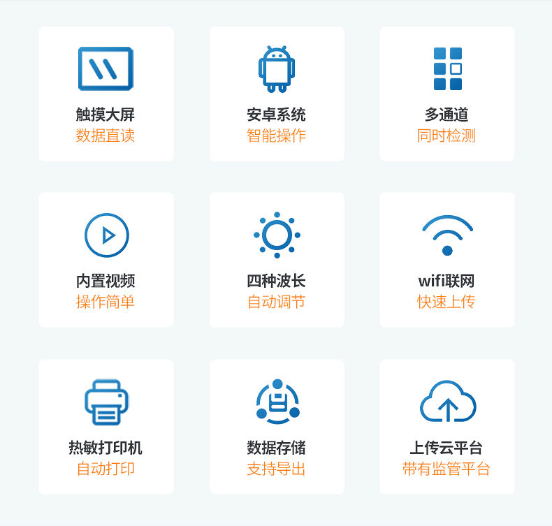 1、安卓智能操作系統,采用更加高效和人性化操作,儀器具有網線連接、wifi聯網上傳、GPRS無線遠傳功能,快速上傳數據。