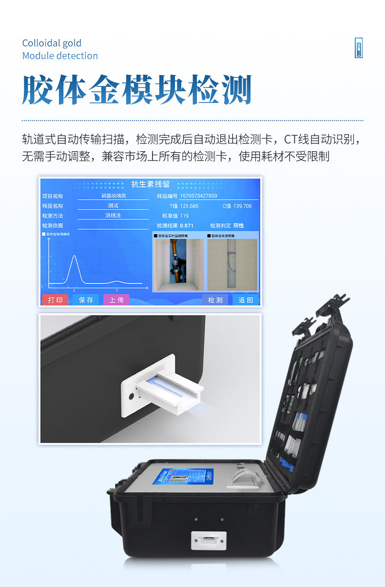 7、一體化便攜式快檢設備,滿足現場及流動檢測使用需求,能夠在同一軟件下實現所有檢測項目的檢測,并可通過同一窗口直觀顯示檢測結果。