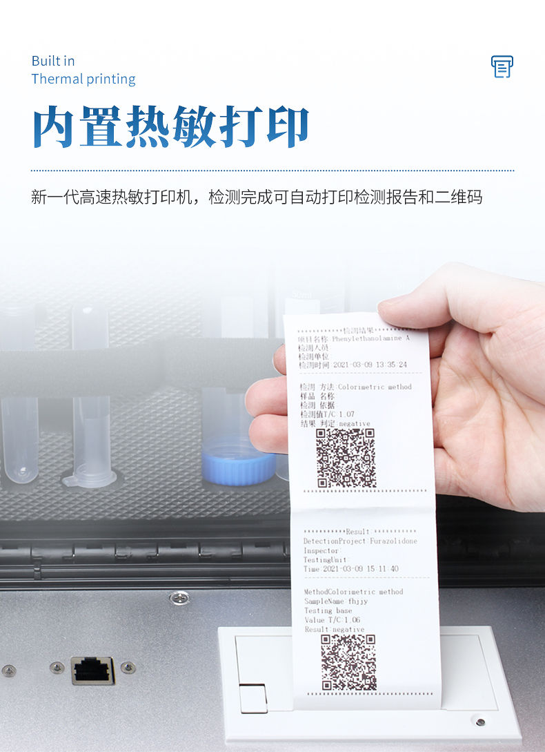 4、新一代高速熱敏打印機,檢測完成可自動打印檢測報告和二維碼。