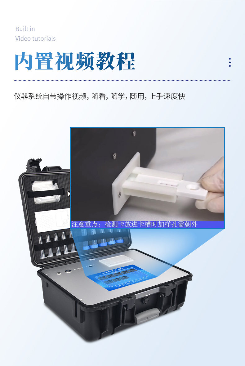 1、一體化便攜式快檢設備,機箱采用工業級ABS工程塑料箱,方便攜帶,穩固耐用,滿足現場及流動檢測使用需求。