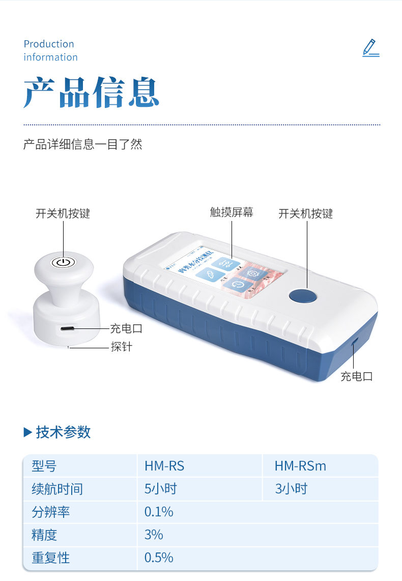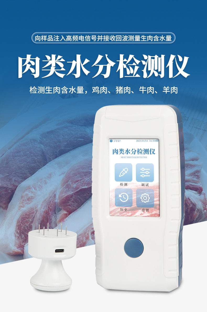肉類水分快速測定儀通過向樣品注入高頻電信號并接收回波測量生肉含水量,相比GB18394-2020國標(biāo)文件中的5.2節(jié)紅外線干燥法(快速法)更快速便捷,具有不需要制備樣品,檢測迅速,操作方便的優(yōu)點。