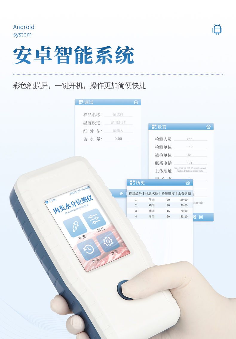 檢測生肉含水量,可檢測4種樣品:雞肉、豬肉、牛肉、羊肉。