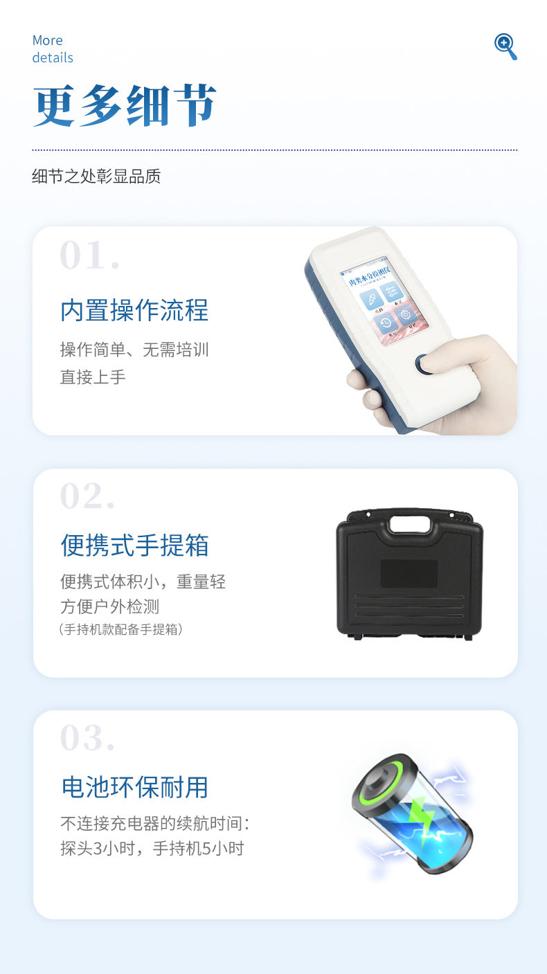 4. 不連接充電器的續(xù)航時間:探頭3小時。