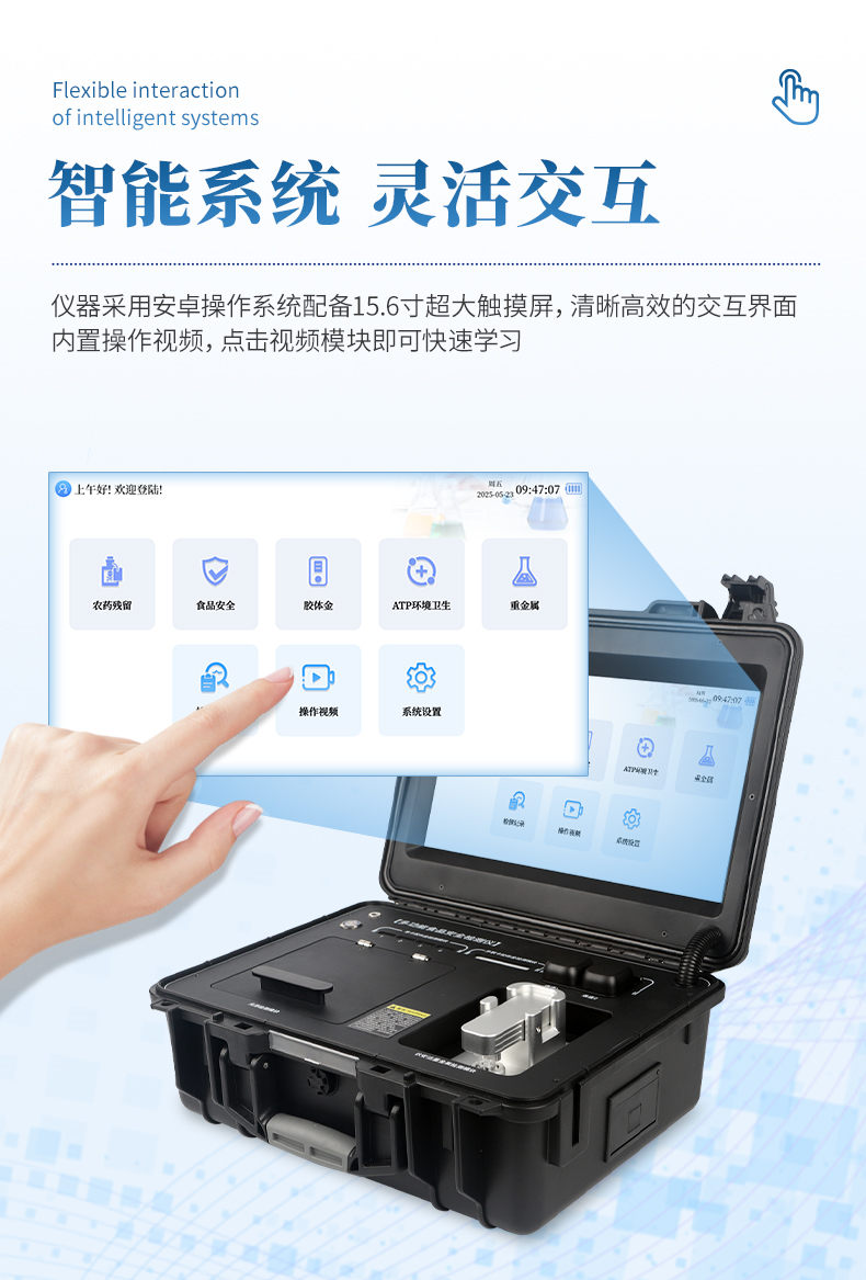 本儀器操作簡便、體積小、集成多種檢測方法,可快速檢測200多項目,包含非食用化學物質、濫用食品添加劑、農藥殘留、獸藥殘留、微量元素、重金屬、細菌微生物、病害肉、營養強化劑、抗生素類殘留、激素類殘留、真菌毒素類殘留、化學類殘留、等現場的定性定量檢測。