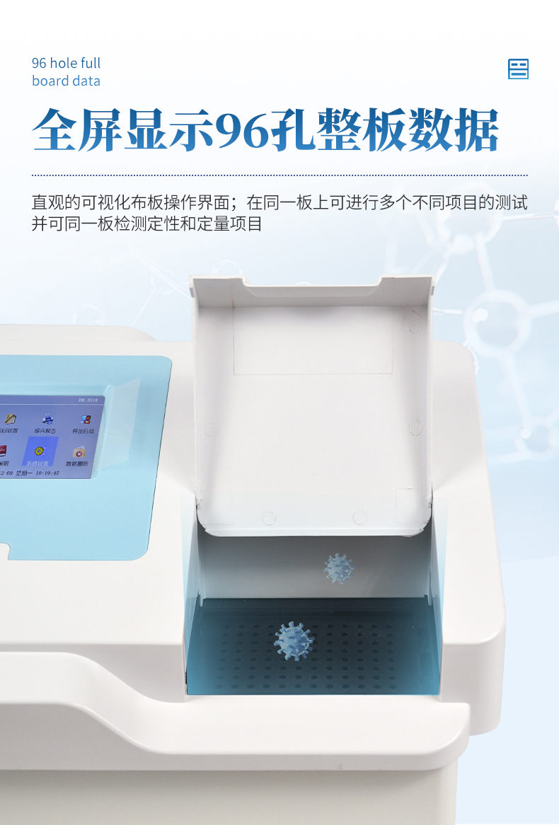 *在同一板上可進(jìn)行24個(gè)不同項(xiàng)目并可用顯示區(qū)分的測試,并可同一板檢測定性和定量項(xiàng)目;