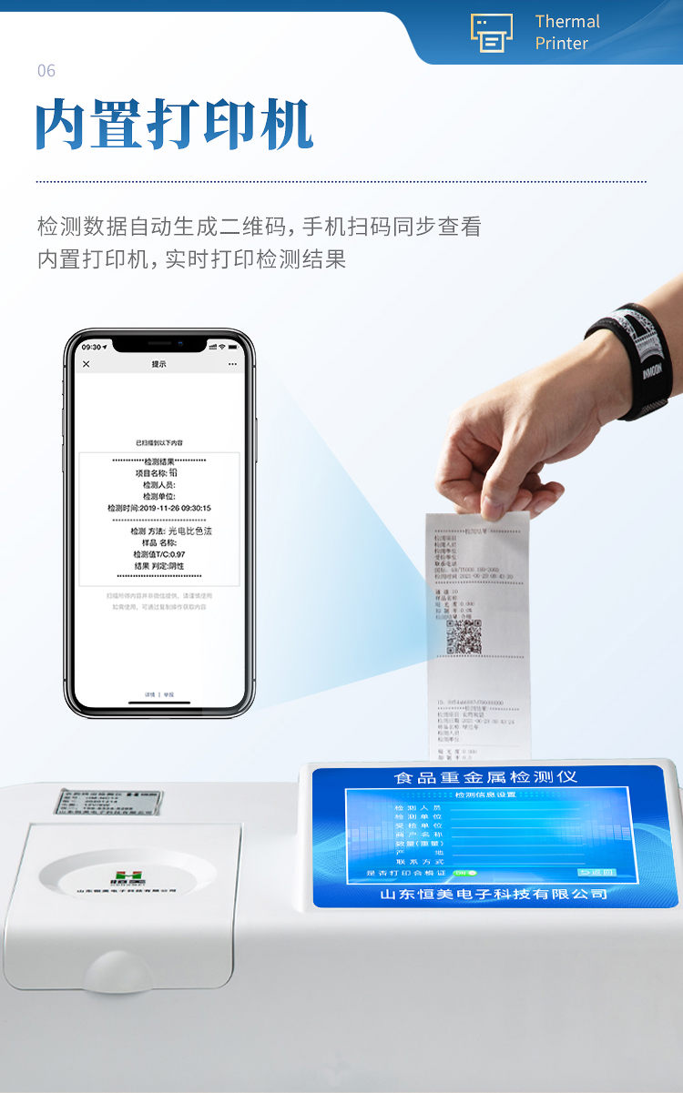 11、內(nèi)置打印機(jī),實(shí)時打印檢測結(jié)果。內(nèi)置大容量電池,便于現(xiàn)場執(zhí)法檢測。