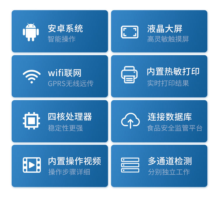 10、支持Wifi網絡,數據可局域網和互聯網數據上傳,檢測結果直接傳至食品安全監管平臺。進行區域食品安全監管及大數據分析處理,檢測區域食品安全長短期動態,達到食品安全問題預估、預警