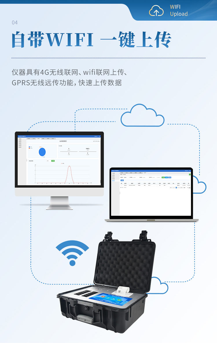 3、儀器具有4G無線聯網、wifi聯網上傳、GPRS無線遠傳功能,快速上傳數據。