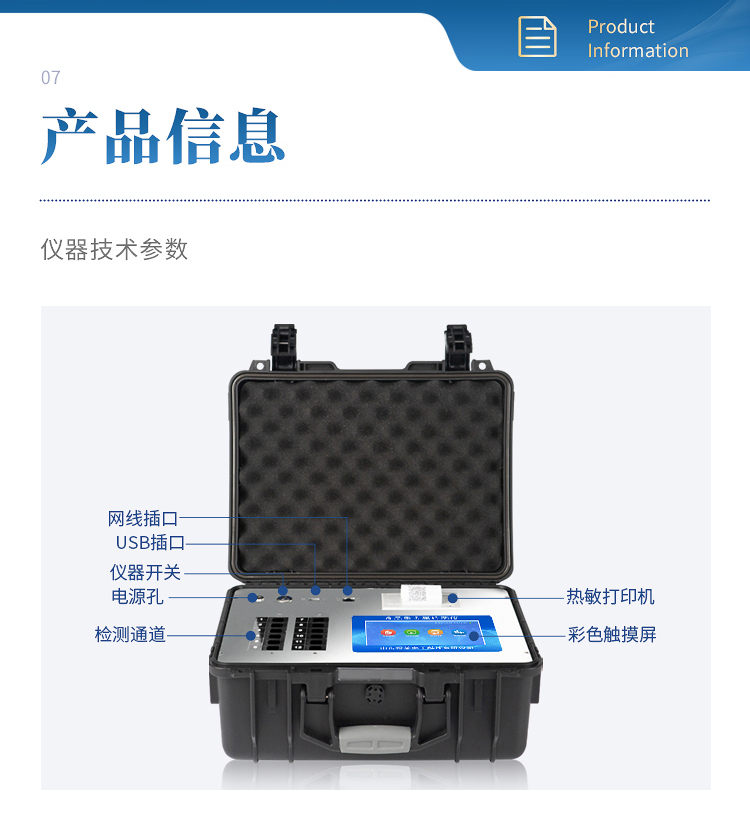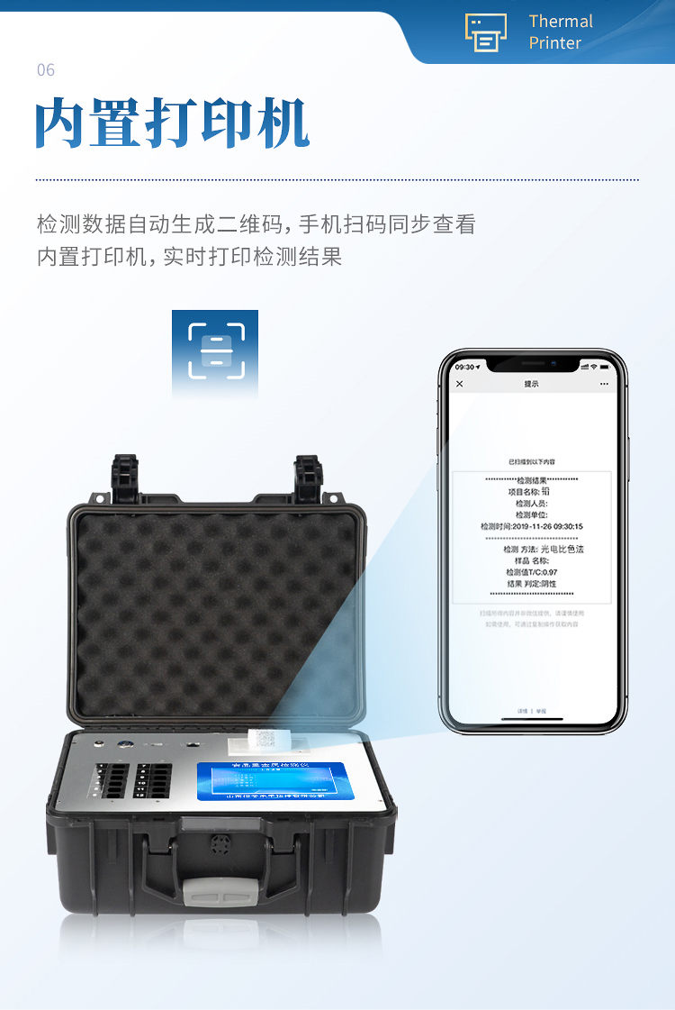 7、高速熱敏打印機,實時打印檢測結果。內置大容量電池,便于現場執法檢測。